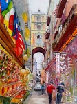 2015In het oude historische deel van Napels ligt de Via San Gregorio Armeno een heel smal straatje met veel winkels waar zelfs nog auto's rijden.